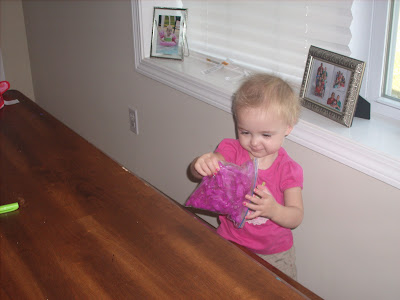 That afternoon we were going to the Library to check out some books, and Kyndal said I will put Anna Claire's socks and shoes on. I walked in the room when she was done to find this...