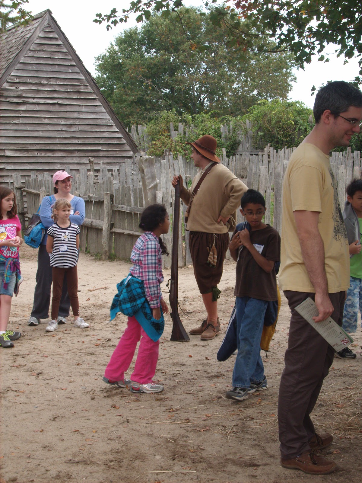 Tuesday we went to Plimoth Plantation in Plymouth, MA for a field trip.  We are currently studying about the Indians, Pilgrims, Mayflower, Columbus and such in history.  This place is only about an hour and a half from our home, so we took the girls.  We had a great day and it was soooo cool to see everything there.  They have people who are in the villages and on the Mayflower II who role play just like back in the day.  You can ask questions and they answer everything.  We spent 4 hours there and it was just a great day of learning and being together.